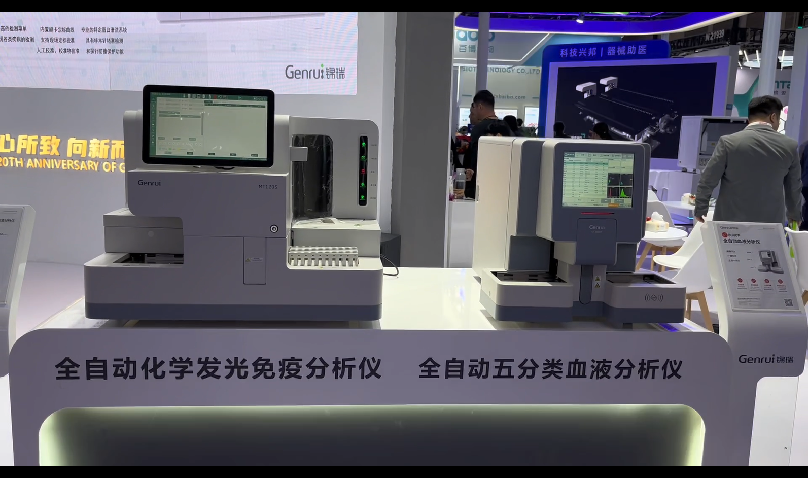 在展会期间,锦瑞生物携全自动尿液特定蛋白流水线、全自动特定蛋白流水线以及重磅新品——全自动化学发光免疫分析仪MT120S、全自动五分类血液分析仪KT8000P、干式荧光免疫分析仪FA120、手持式干式荧光免疫分析仪FA20精彩亮相本次展会。