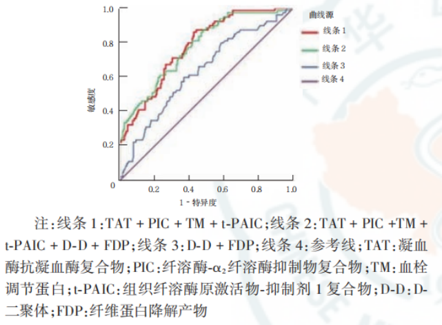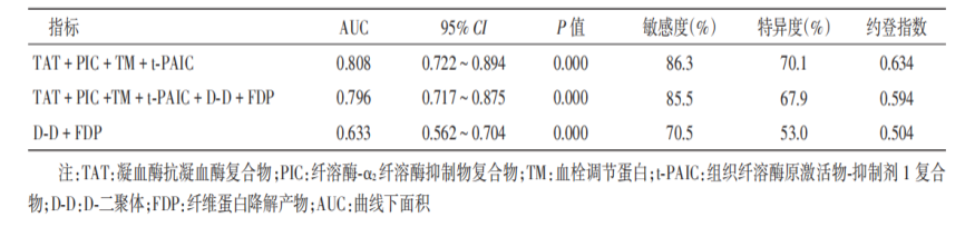 表2:联合诊断血栓形成的ROC曲线分析