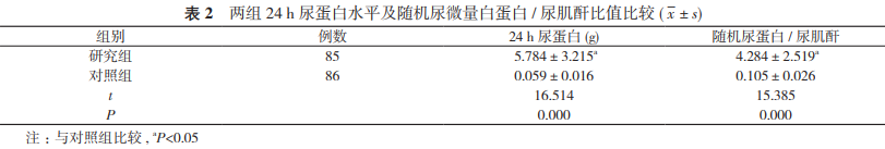 其中选取 85 例肾病患者作为研究组 ,另选取 86 同期健康体检肾脏系统检查正常的健康体检者作为对照组。
