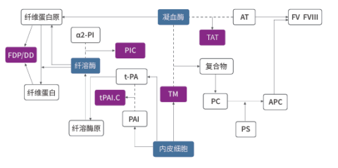 凝血酶生成的分子标志物,直接证实凝血系统的活化; 浓度升高可预估血栓的早期形成和程度; 辅助诊断DIC,检测溶栓效果及血栓复发情况; 抗凝\抗纤治疗效果监测,溶栓治疗后的再栓监测。
